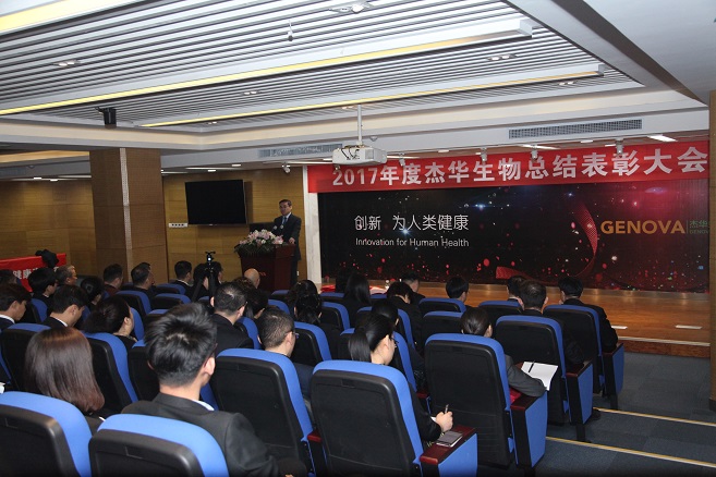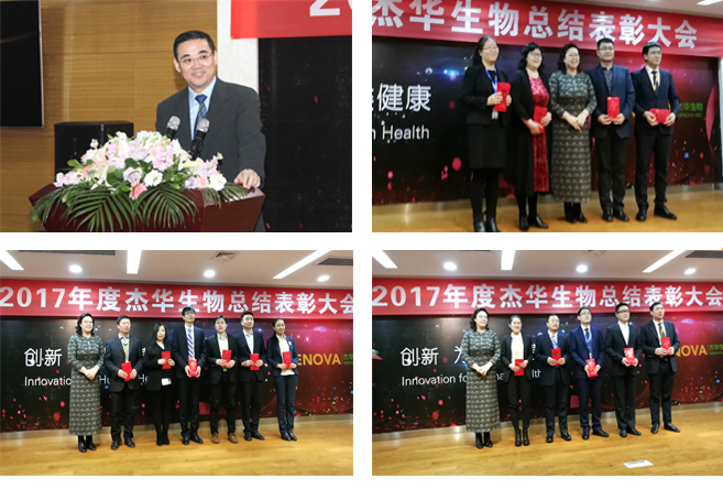 2018年2月9日上午,杰華生物集團在杰華青島生產基地學術報告廳隆重召開2017年度總結表彰大會。杰華生物集團董事長吳小思博士、CEO劉龍斌博士,以及公司高管和所有員工參加會議,大會由公司副總裁高軍主持。