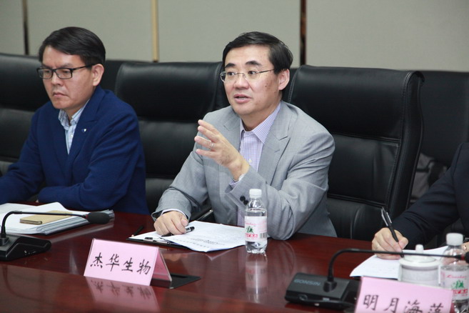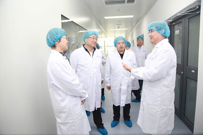 2018年4月25日,山東省食品藥品監督管理局黨組書記、局長馬越男到杰華青島生產基地調研,杰華生物集團CEO劉龍斌博士向馬局長一行詳細介紹了GMP車間的基本情況,匯報了集團的產業發展歷程和規劃。