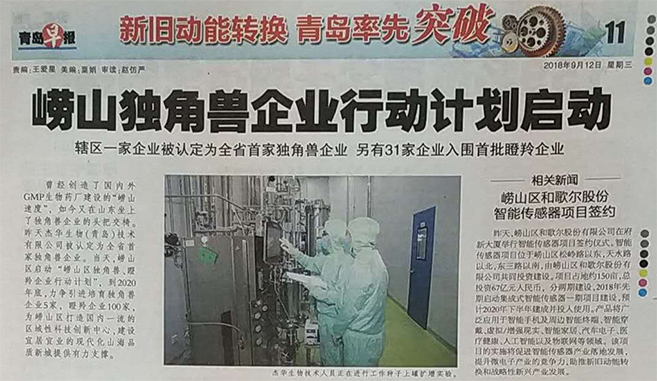 上一條:青島晚報:杰華生物成全省首家“獨角獸” 2018-09-12